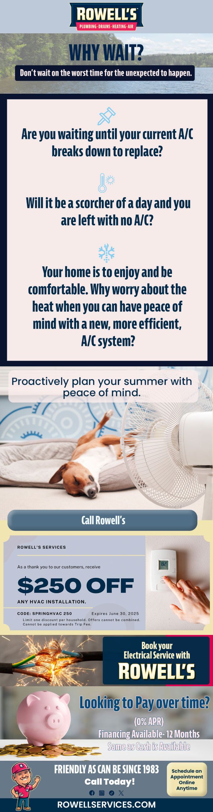 "Friendly As Can Be Since 1983!" When you need help with your plumbing, drains, heating, cooling or electrical in Meredith, you can always rely on Rowell's Services! Call us now or book online!