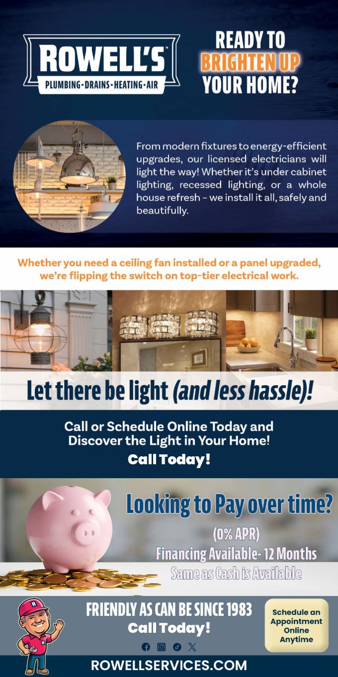 From modern fixtures to energy-efficient upgrades, our licensed electricians will light the way! Whether it's under cabinet lighting, recessed lighting, or a whole house refresh - we install it all, safely and beautifully.